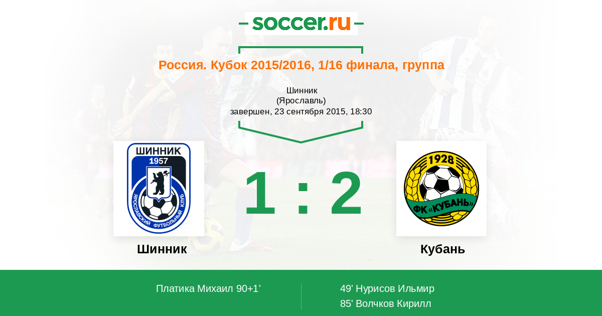 Шинник - Кубань: обзор матча 23 сентября 2015
