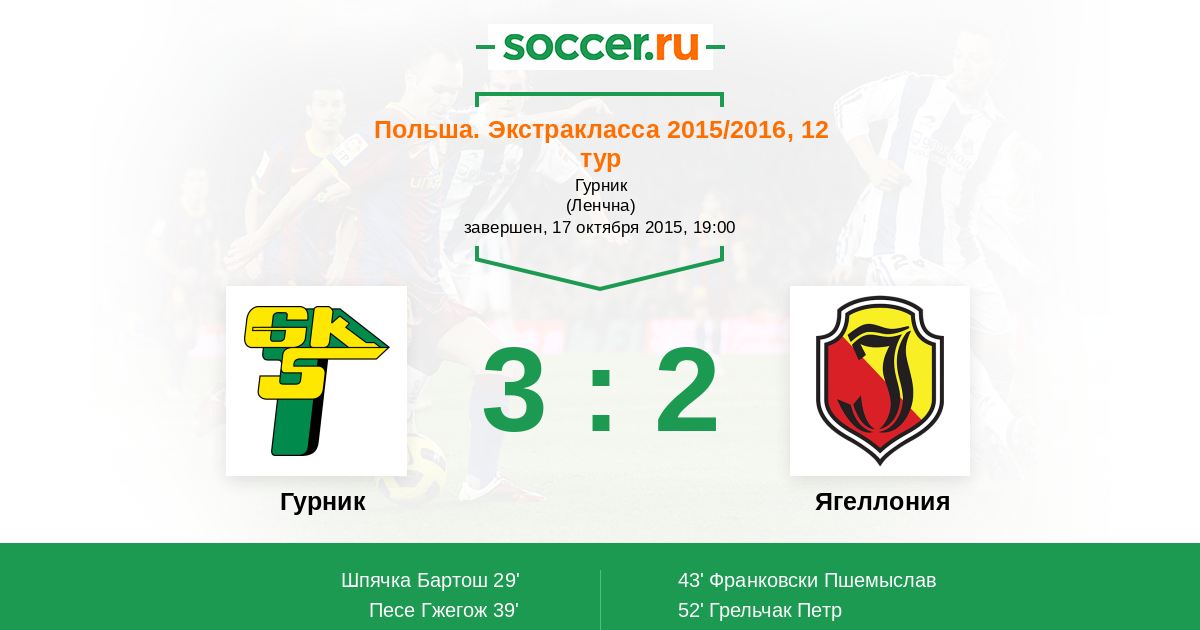 Гурник - Ягеллония: обзор матча 17 октября 2015