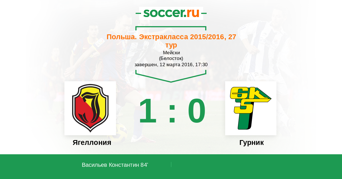 Ягеллония - Гурник: обзор матча 12 марта 2016
