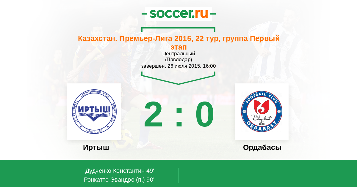 Иртыш - Ордабасы: обзор матча 26 июля 2015
