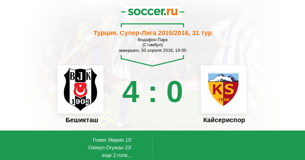 Бешикташ - Кайсериспор: обзор матча 30 апреля 2016