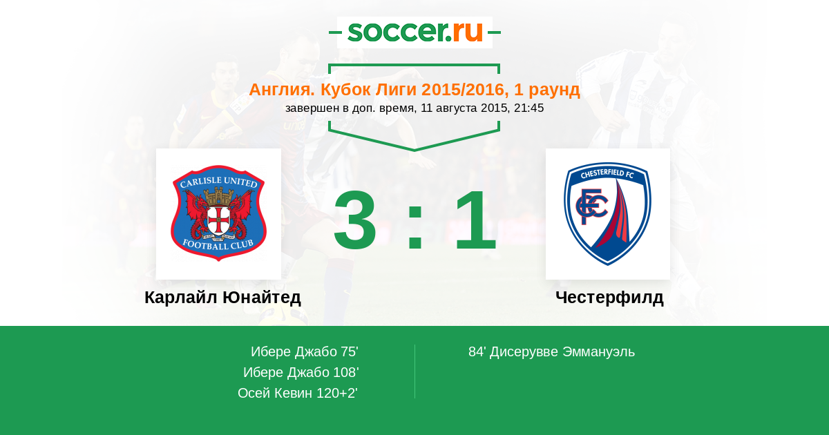 Карлайл Юнайтед - Честерфилд: обзор матча 11 августа 2015
