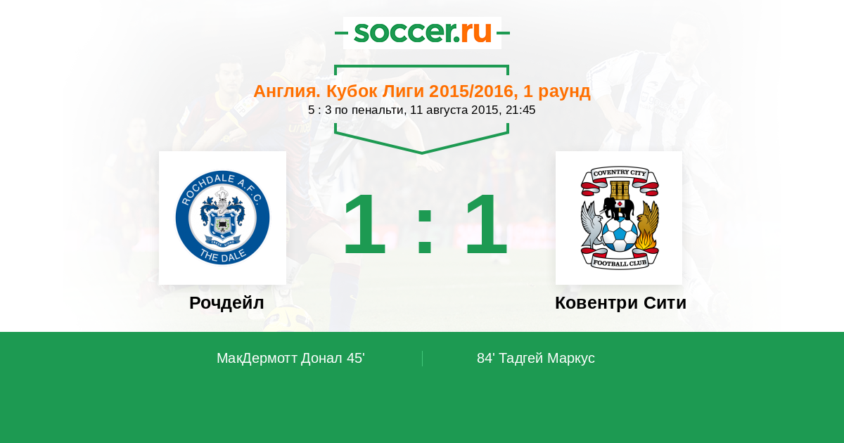 Рочдейл - Ковентри Сити: обзор матча 11 августа 2015