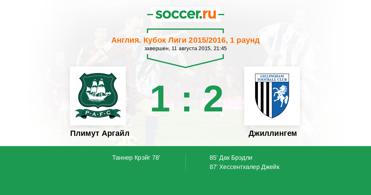 Плимут Аргайл - Джиллингем: обзор матча 11 августа 2015