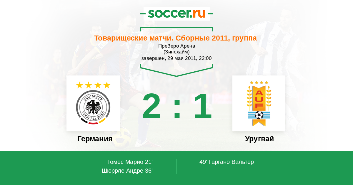 Германия - Уругвай: обзор матча 29 мая 2011