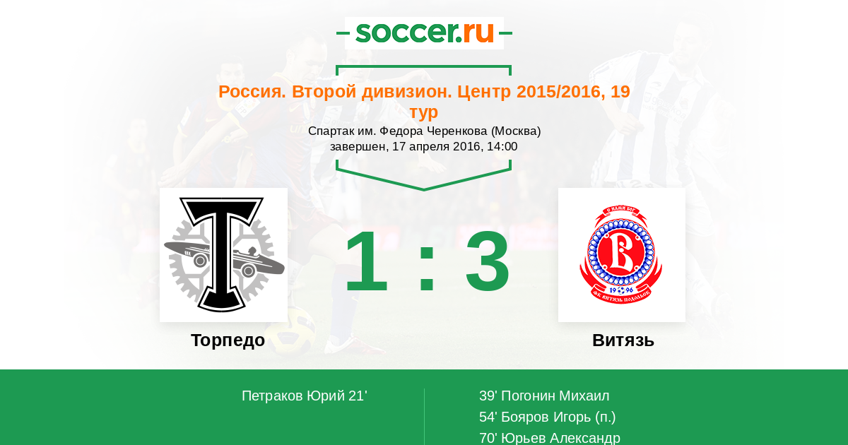 Торпедо - Витязь: обзор матча 17 апреля 2016