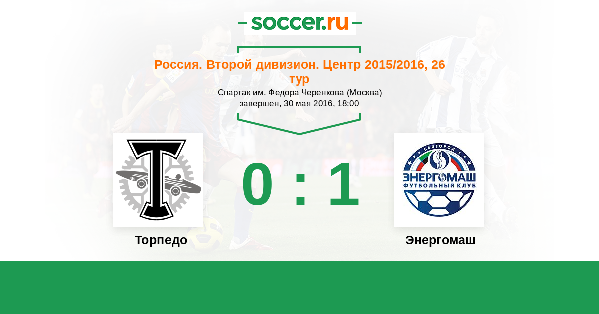 Торпедо - Энергомаш: обзор матча 30 мая 2016