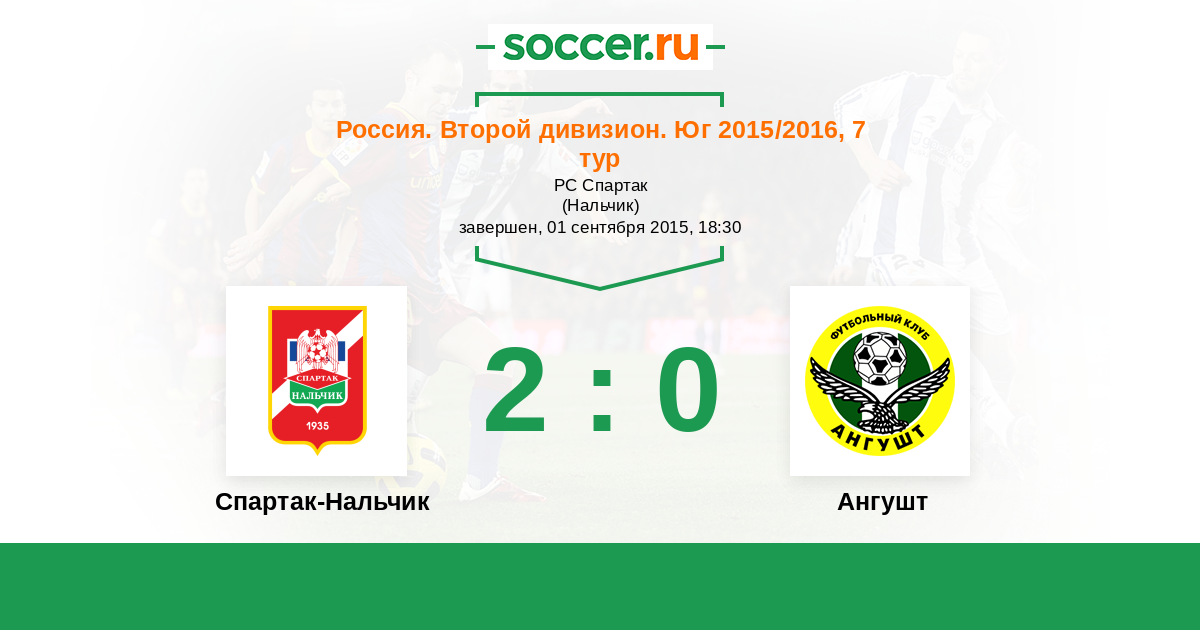Спартак-Нальчик - Ангушт: обзор матча 1 сентября 2015
