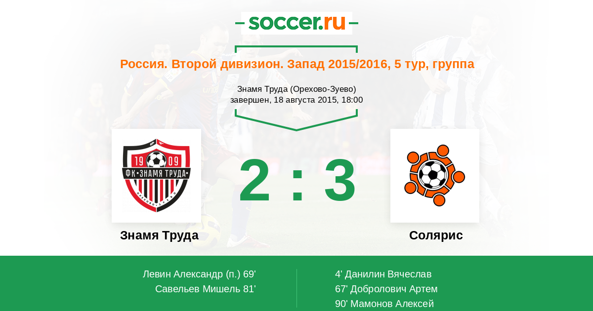 Знамя Труда - Солярис: обзор матча 18 августа 2015
