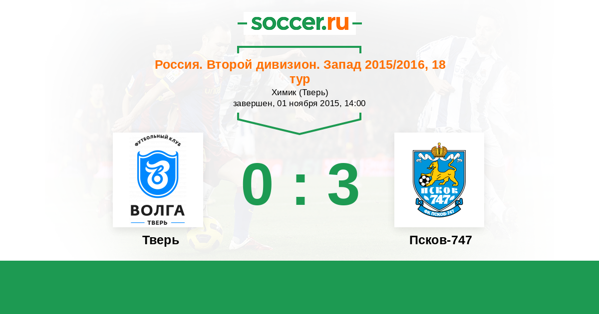 Тверь - Псков-747: обзор матча 1 ноября 2015