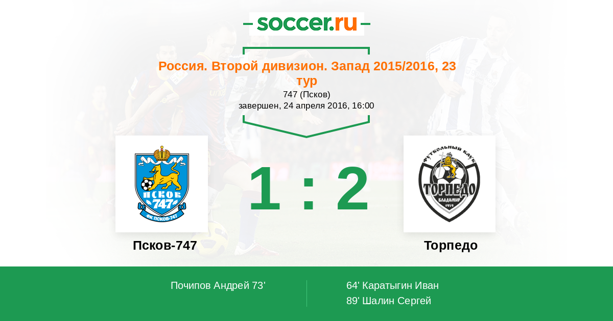 Псков-747 - Торпедо: обзор матча 24 апреля 2016