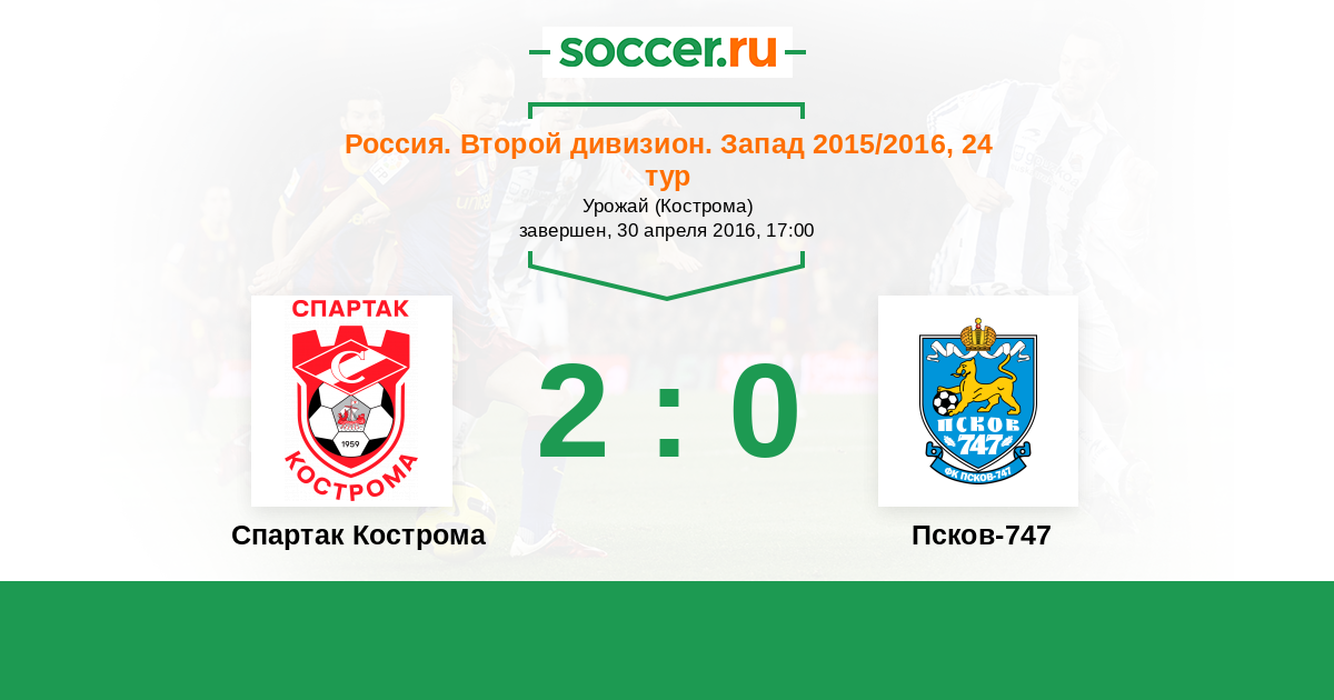 Спартак Кострома - Псков-747: обзор матча 30 апреля 2016