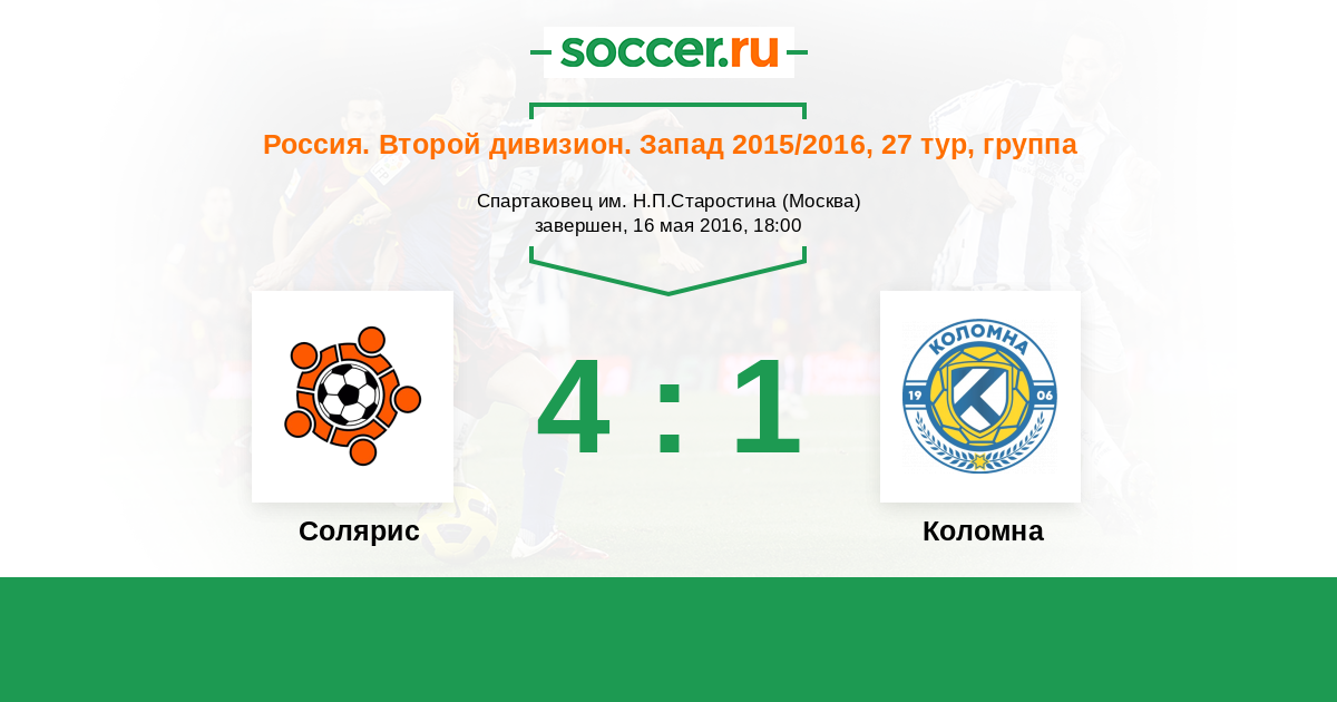 Солярис - Коломна: обзор матча 16 мая 2016