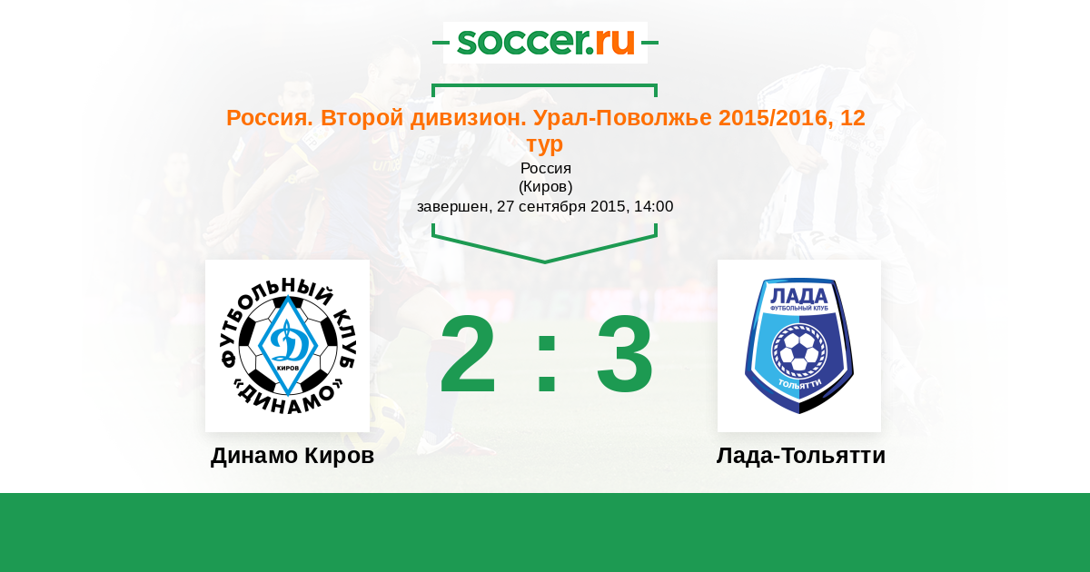 Динамо Киров - Лада-Тольятти: обзор матча 27 сентября 2015