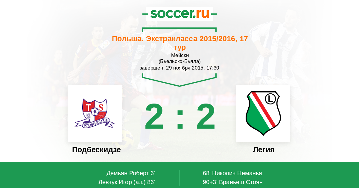 Подбескидзе - Легия: обзор матча 29 ноября 2015