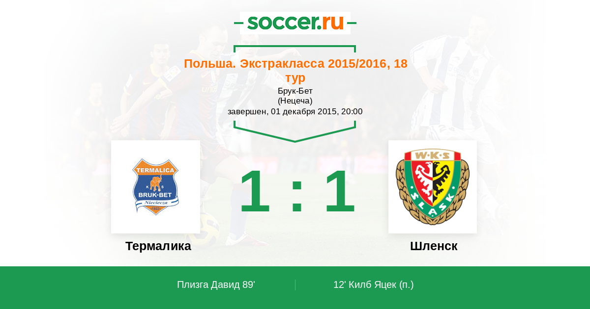 Термалика - Шленск: обзор матча 1 декабря 2015