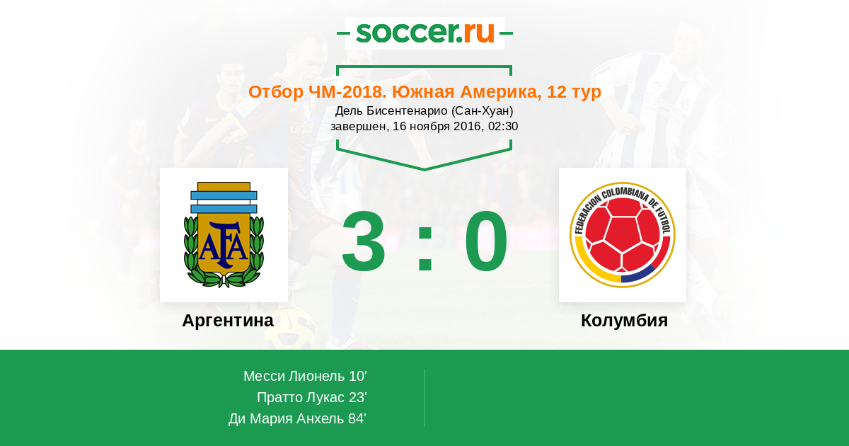 Аргентина - Колумбия: обзор матча 16 ноября 2016