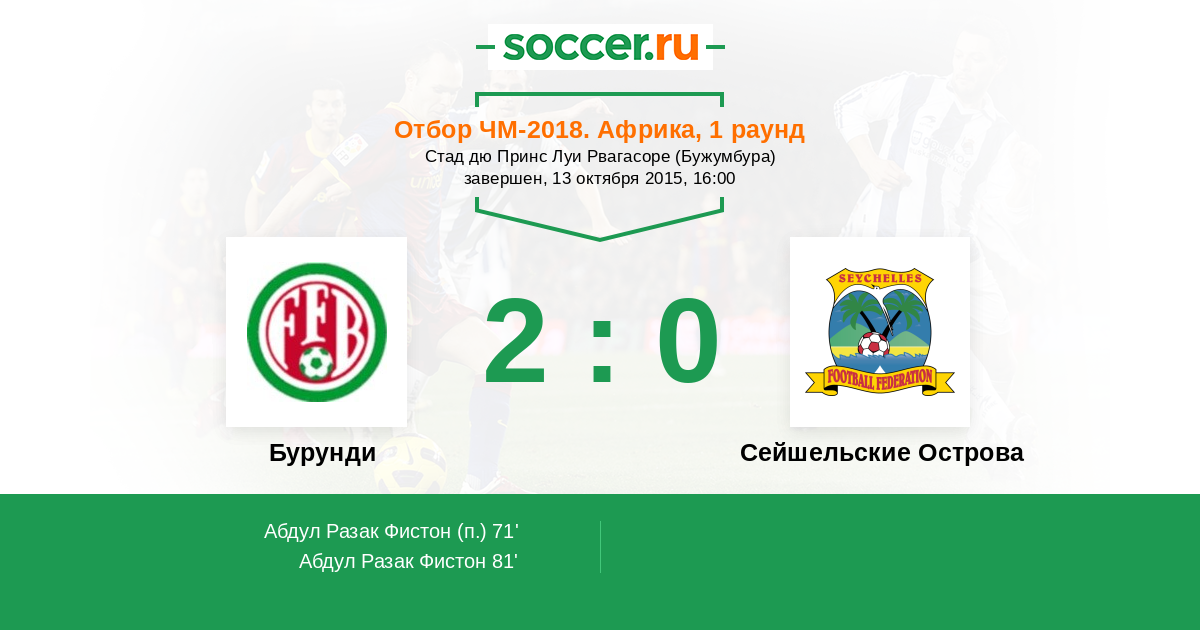 Бурунди - Сейшельские Острова: обзор матча 13 октября 2015