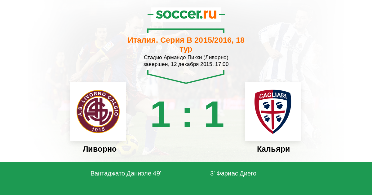 Ливорно - Кальяри: обзор матча 12 декабря 2015