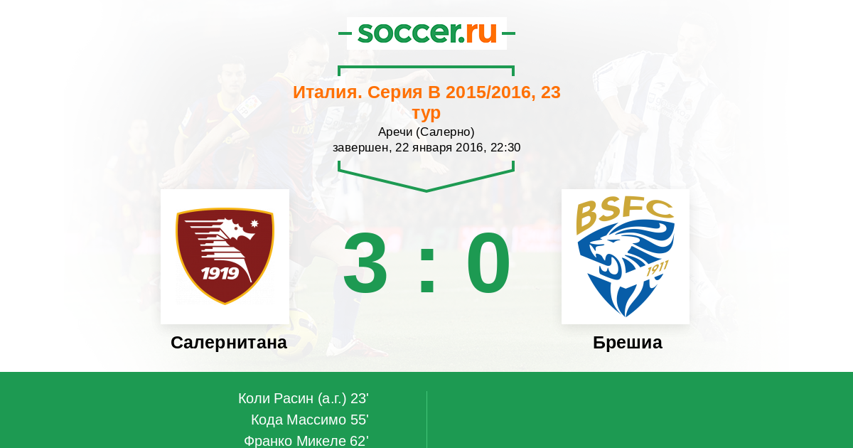 Салернитана - Брешиа: обзор матча 22 января 2016