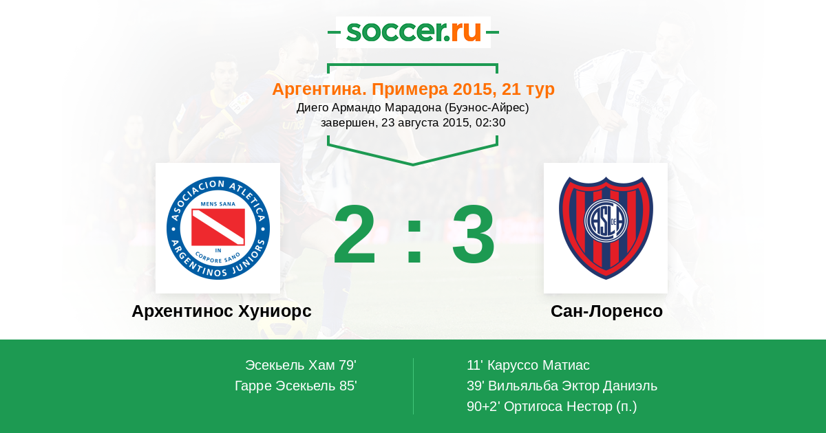 Архентинос Хуниорс - Сан-Лоренсо: обзор матча 23 августа 2015