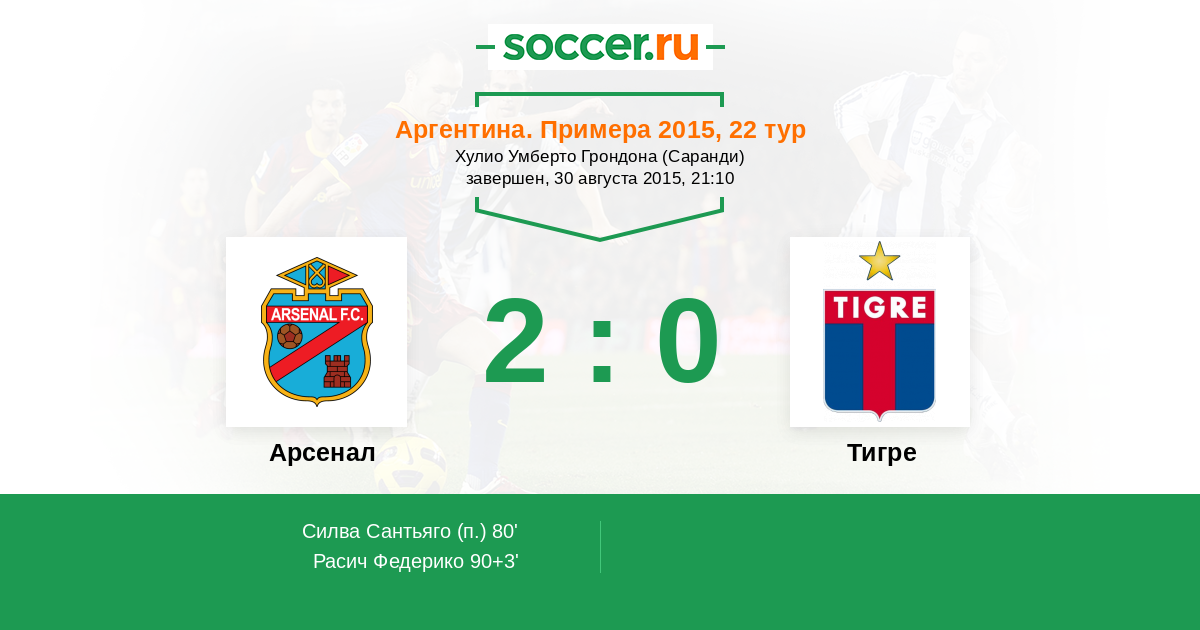 Арсенал - Тигре: обзор матча 30 августа 2015