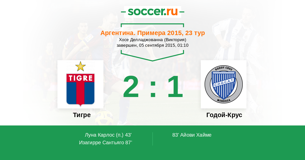 Тигре - Годой-Крус: обзор матча 5 сентября 2015