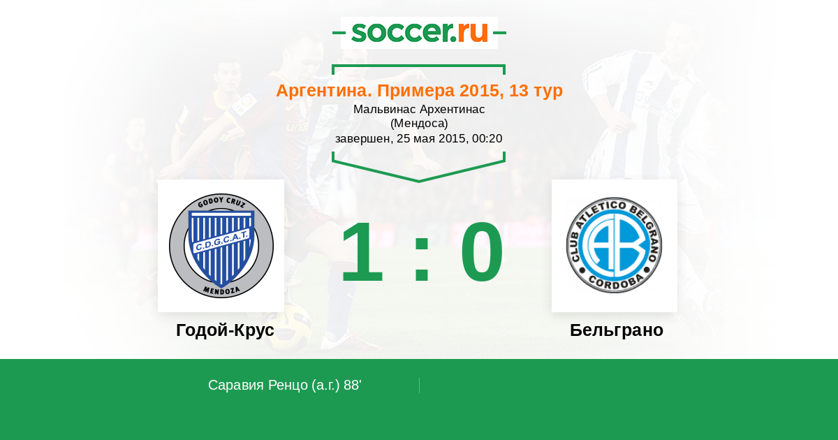 Годой-Крус - Бельграно: обзор матча 25 мая 2015