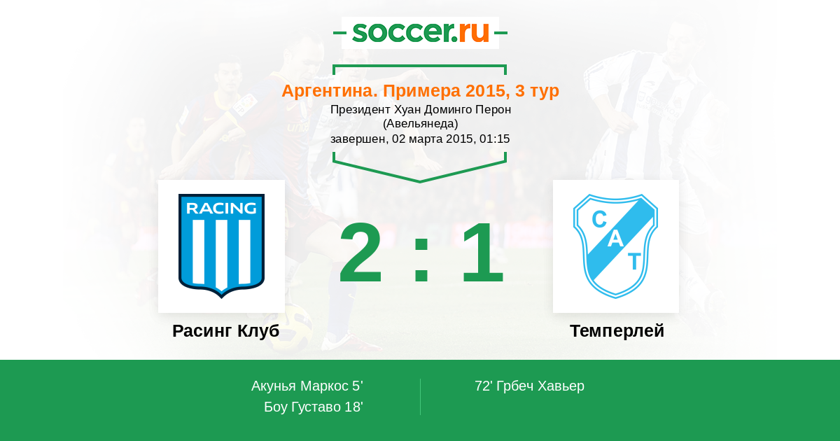 Расинг Клуб - Темперлей: обзор матча 2 марта 2015