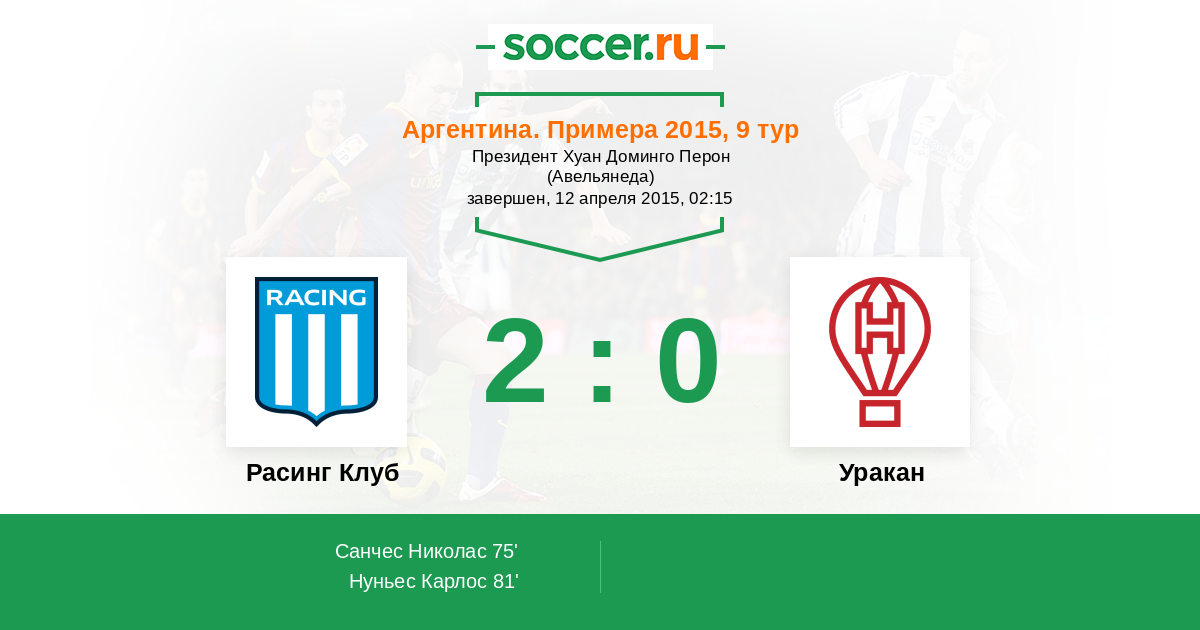 Расинг Клуб - Уракан: обзор матча 12 апреля 2015