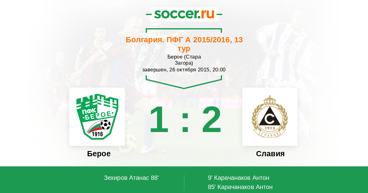 Берое - Славия: обзор матча 26 октября 2015