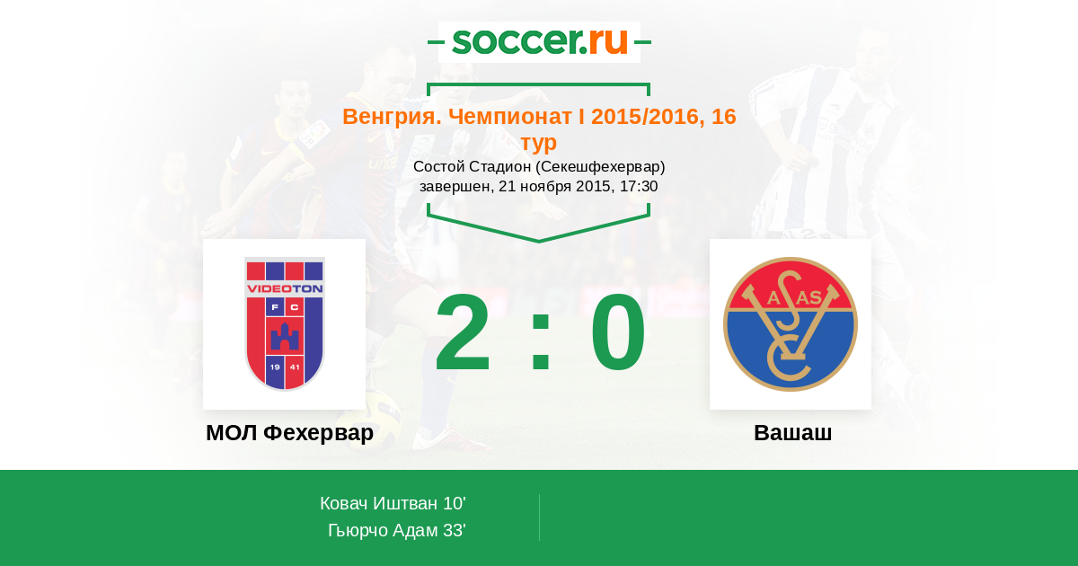 Видеотон - Вашаш: обзор матча 21 ноября 2015