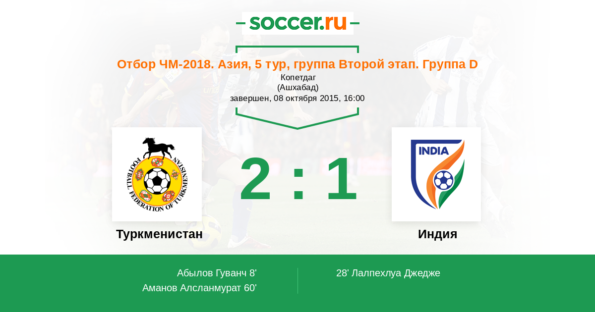 Туркменистан - Индия: обзор матча 8 октября 2015