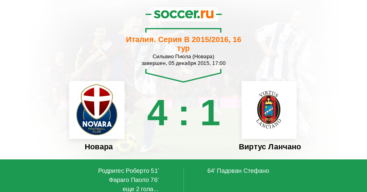 Новара - Виртус Ланчано: обзор матча 5 декабря 2015