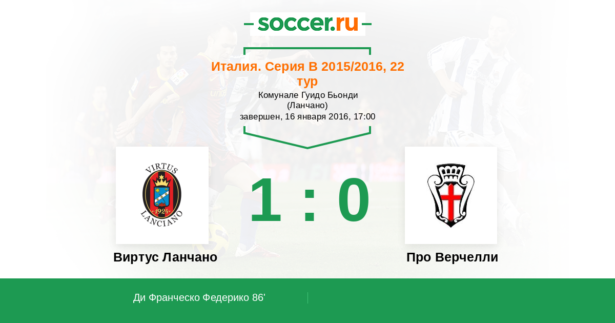 Виртус Ланчано - Про Верчелли: обзор матча 16 января 2016