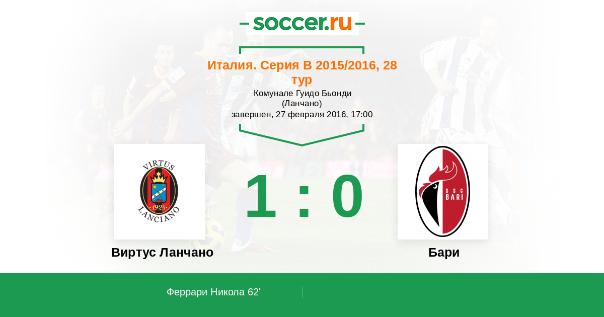 Виртус Ланчано - Бари: обзор матча 27 февраля 2016