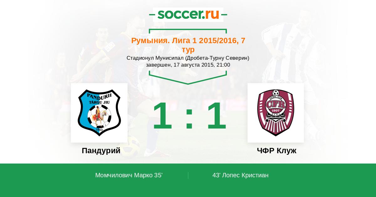 Пандурий - ЧФР Клуж: обзор матча 17 августа 2015