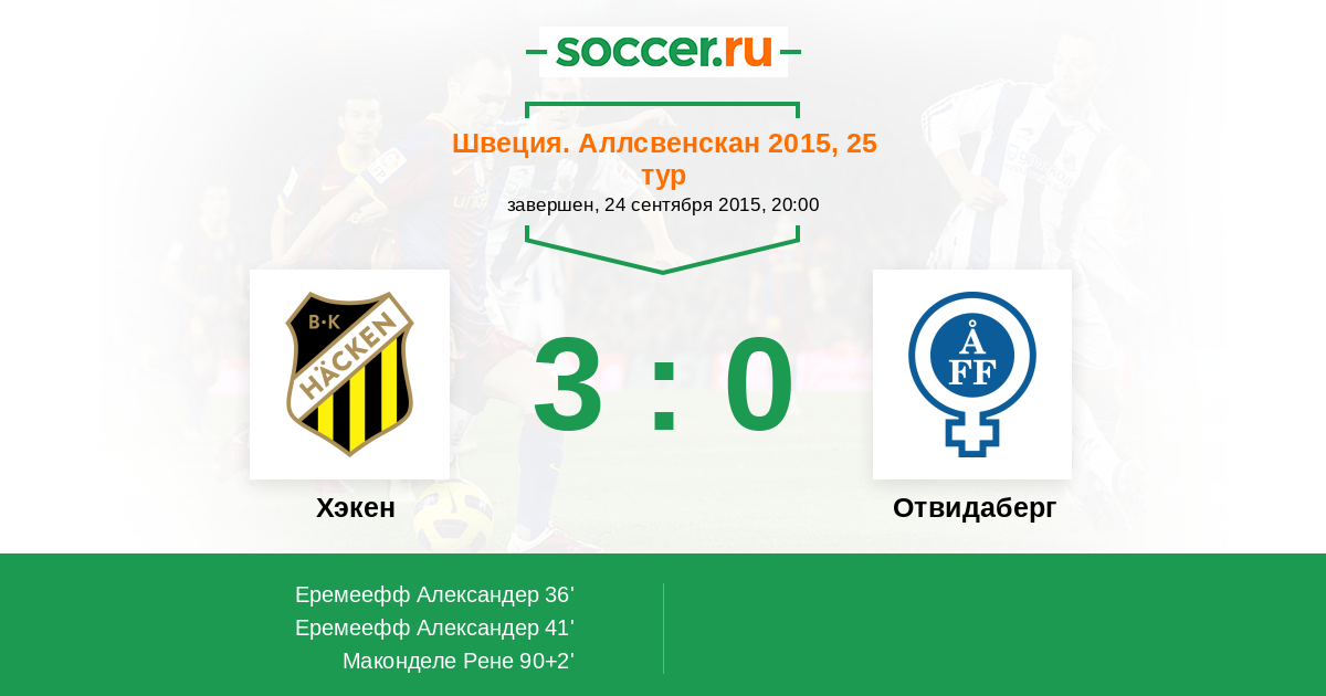 Хэкен - Отвидаберг: обзор матча 24 сентября 2015