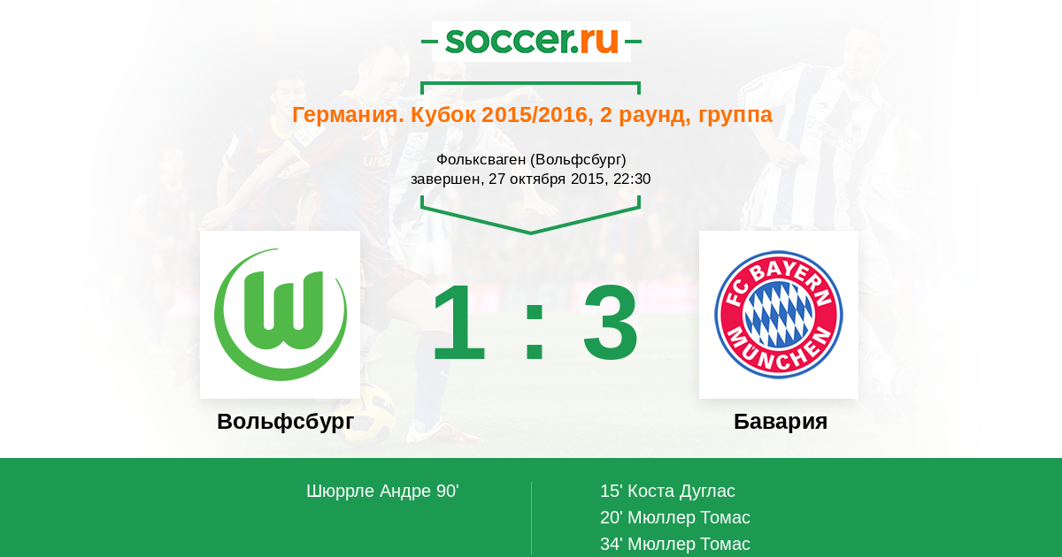 Вольфсбург - Бавария: обзор матча 27 октября 2015