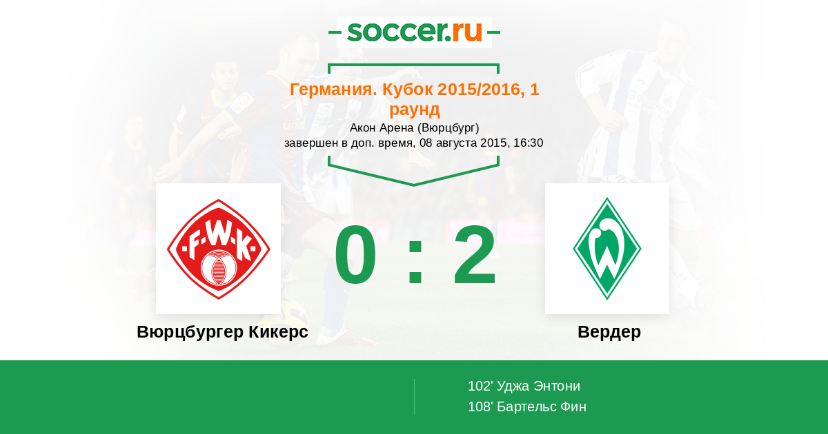 Вюрцбургер Кикерс - Вердер: обзор матча 8 августа 2015