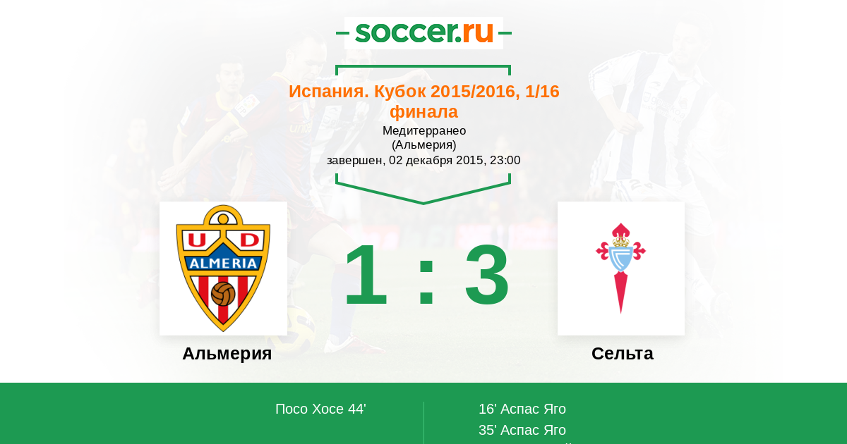 Альмерия - Сельта: обзор матча 2 декабря 2015