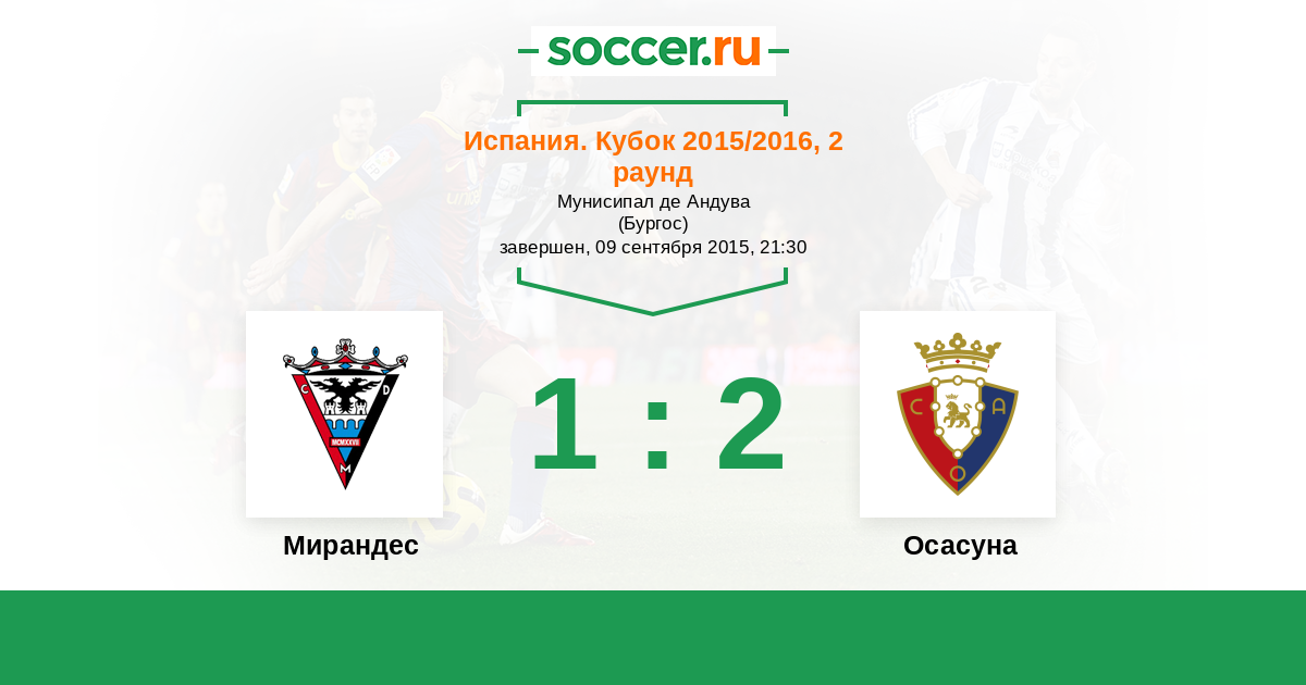 Мирандес - Осасуна: обзор матча 9 сентября 2015