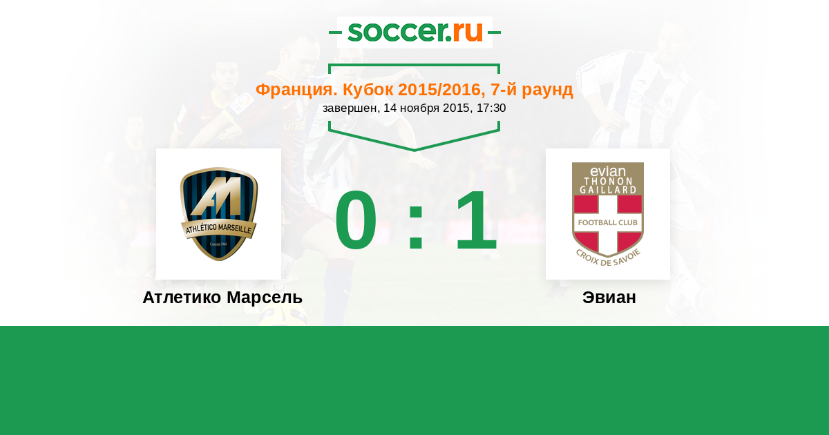 Атлетико Марсель - Эвиан: обзор матча 14 ноября 2015