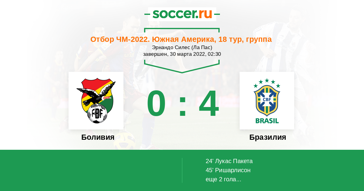 В четырех из пяти последних встреч меньше трех голов сборная Бразилии не забивала, при этом за это время ни разу не позволила отличиться соперникам.