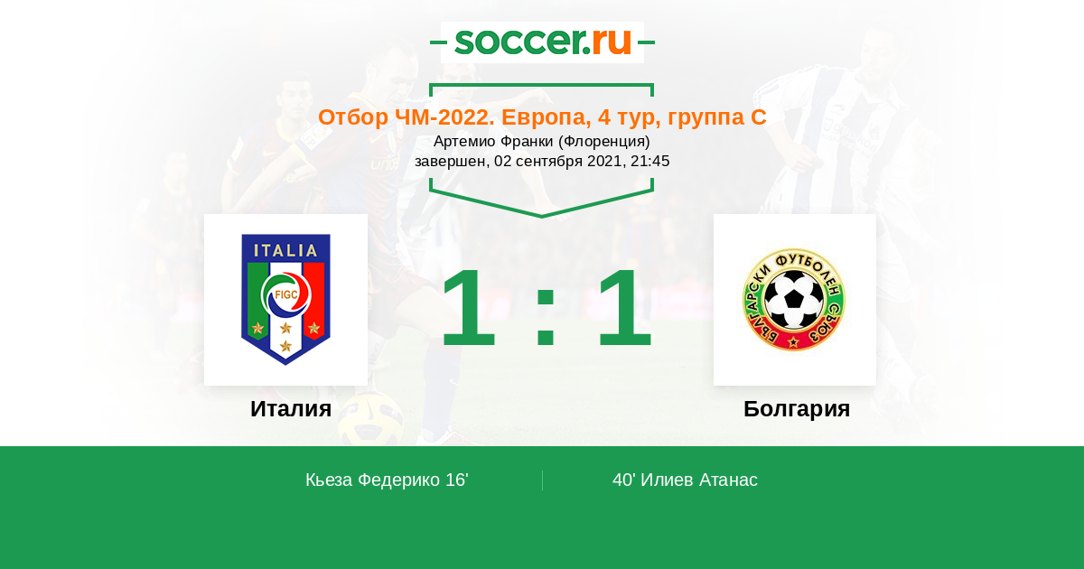 Основная надежда гостей связана с тем, что удастся выстроить высокую и эшелонированную защиту, которую раскрыть Италии будет очень тяжело и для победы хозяева перейдут на дальний расстрел ворот соперника. По сути, это в первом матче и случилось, однако "скуадре" победить удалось. Так должно получиться и на сей раз, хотя очень хочется увидеть потомков Христо Стоичкова силой, с которой нужно считаться.