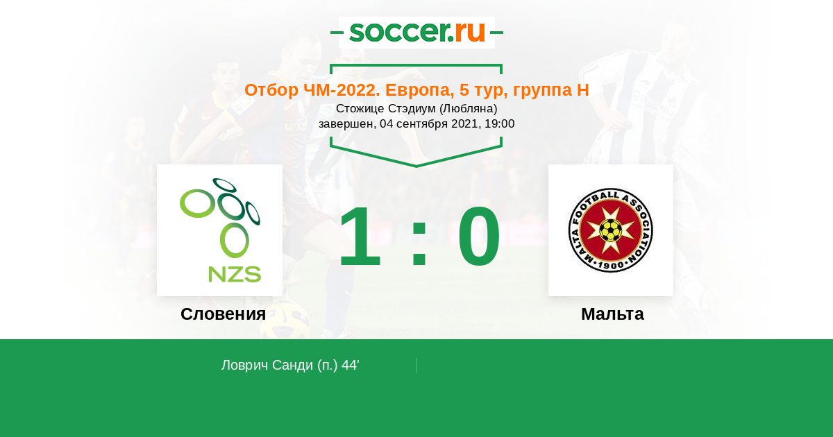 То что Мальта выиграла у Кипра 3-0 наоброт настроит команду Словении на матч и недооценка не должно быть и отсюда резельтат уверенная победа Словении , они уж умеют играть с такими командами и выиграю с как можно большей разницей мячей которая может пригодится при распределении мест в группе, лидеры далеко не ушли и победа в этом матче может даже в лидеры команду Словении если Россиия и Хорватия снова потеряют очки.