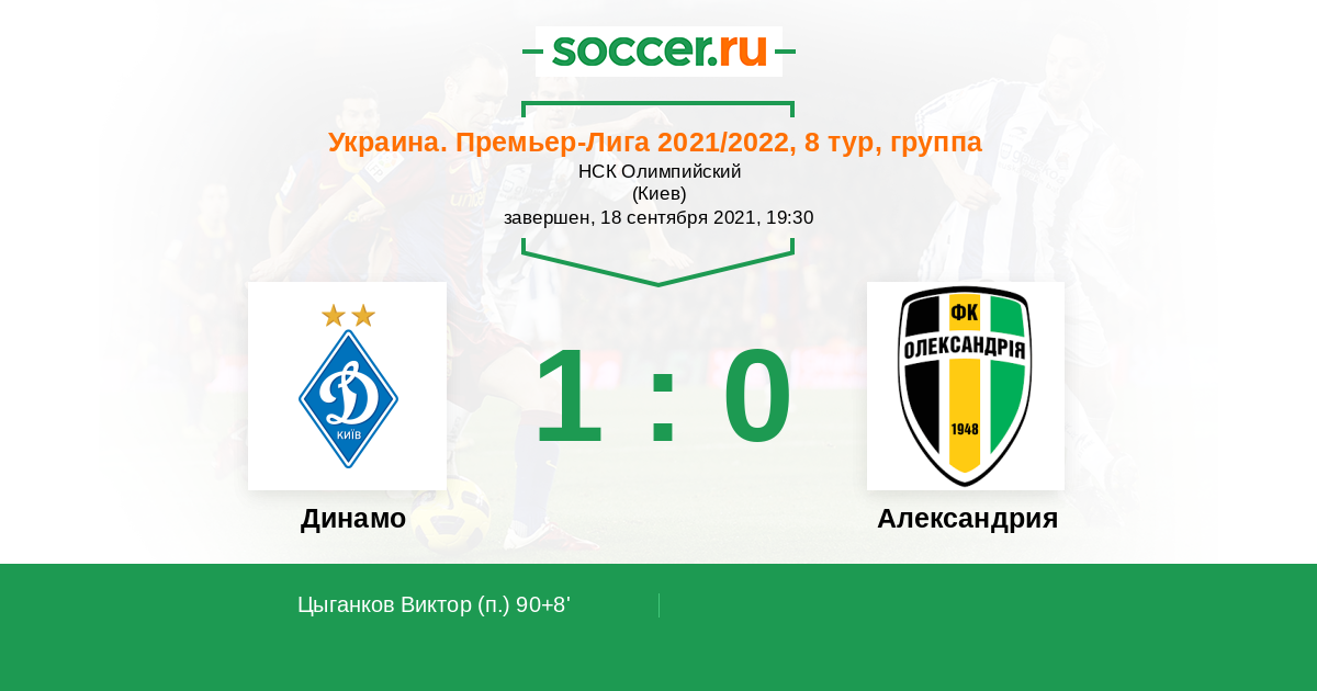 Динамо Киев после ничьи в лиге чемпионов возвращается в чемпионат Украины. Принимают Александрию, которая в этом сезоне очень хороша и показывает стабильный уровень игры. За 7 прошедших туров Александрия лишь однажды проиграла 0:1 в гостях Минаю. Они обыгрывали шахтёр 2:1. Думаю, что сегодня они удержат матч с плюсовой форой и поборется с лидером чемпионата.