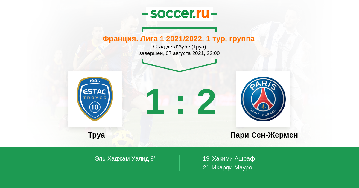 Труа вернулся в элитный дивизион Франции спустя три года после понижения в классе и в первом матче им предстоит играть против ПСЖ ,шансов на победу у них очень мало .Тем временем ПСЖ усилил состав игроками такими как :Серхио Рамос, Ашраф Хакими, Жоржиньо Вейналдум и Джанлуиджи Доннарумма,так что в победе гостей в этой игре сомневаться не стоит, возможно счёт даже будет разгромным