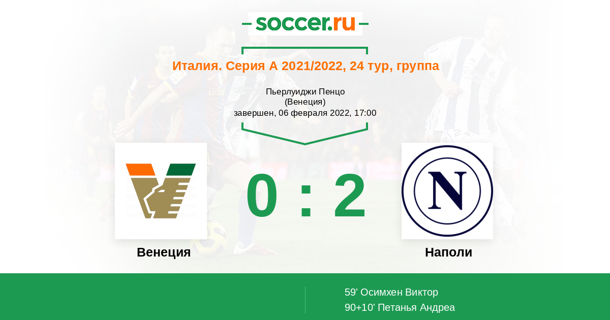 Команды решают разные задачи. "Наполи" претендует на чемпионский титул, а "Венеция" вернулась в серию А после долгого перерыва и просто хочет в ней закрепиться. Сейчас команда находится прямо над зоной вылета. Отрыв всего одно очко. "Наполи" обычно хорошо играет с соперниками из нижней части турнирной таблицы. Надеюсь, что не потеряет очки. В первом круге неполитанцы выиграли 2:0.