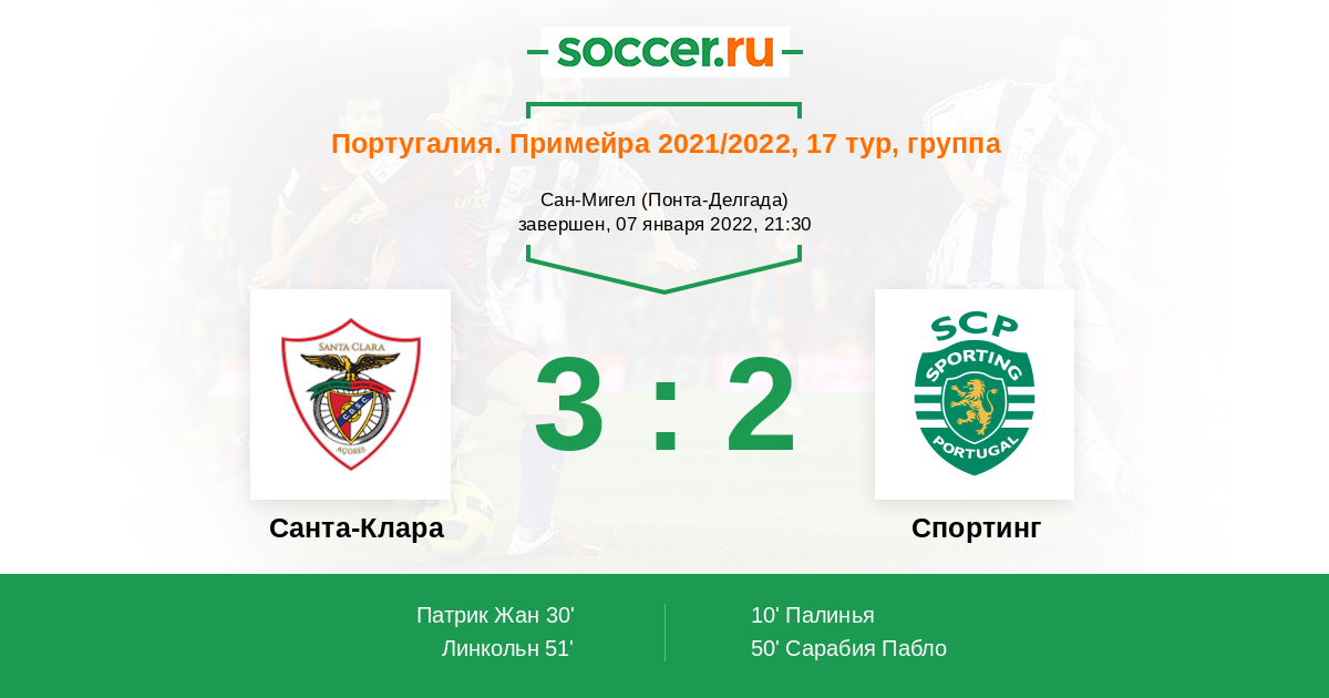 Санта-Клара за всю историю никогда не обыгрывала Спортинг. Она проиграла 10 из 12 матчей и заработала 2 ничьи но было это очень давно а в последние годы Спортинг выиграл все матчи у Санта-Клары причем большинство из них с разницей в 1 мяч.